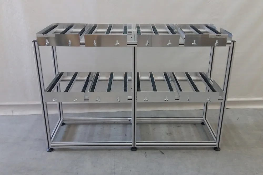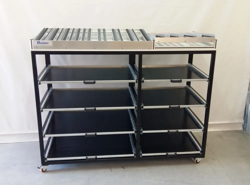 Sistema indicado para pequenos volumes e grande rotatividade, facilitando a separação de materiais e o abastecimento e desabastecimento na linha de produção.